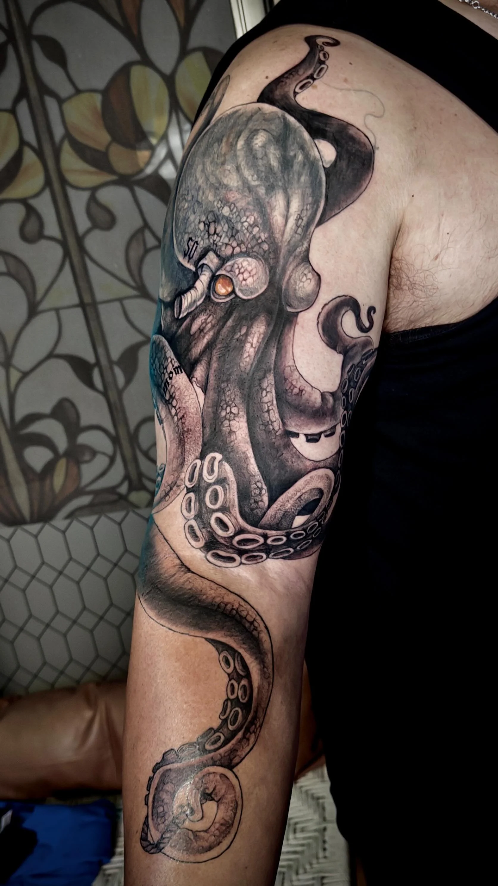 My approach is collaborative—I believe the best tattoos are born from open communication, careful listening, and blending your vision with my expertise. Whether you’re seeking a fully custom piece, a meaningful cover-up, or bringing in a design of your own, I’m committed to making it come to life with precision and care.